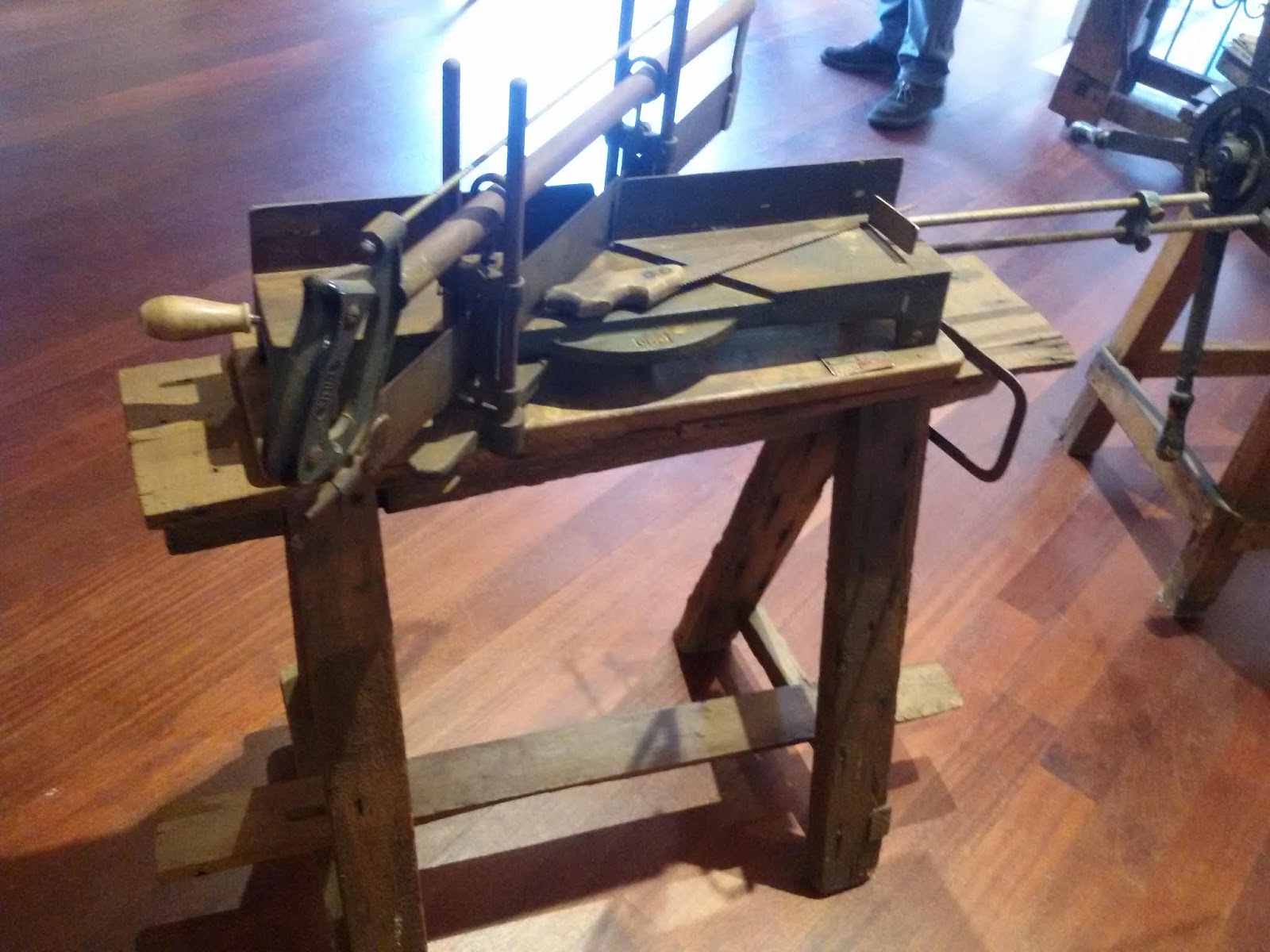 tavolozze; e ancora c’è un torchio per la stampa per le xilografie, arnesi di